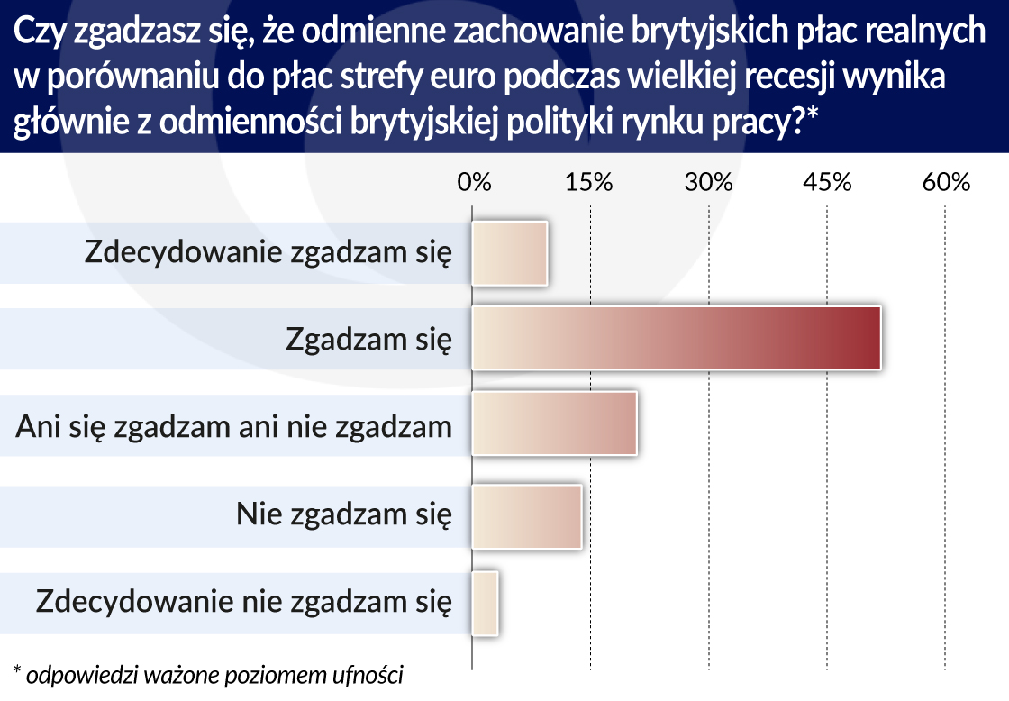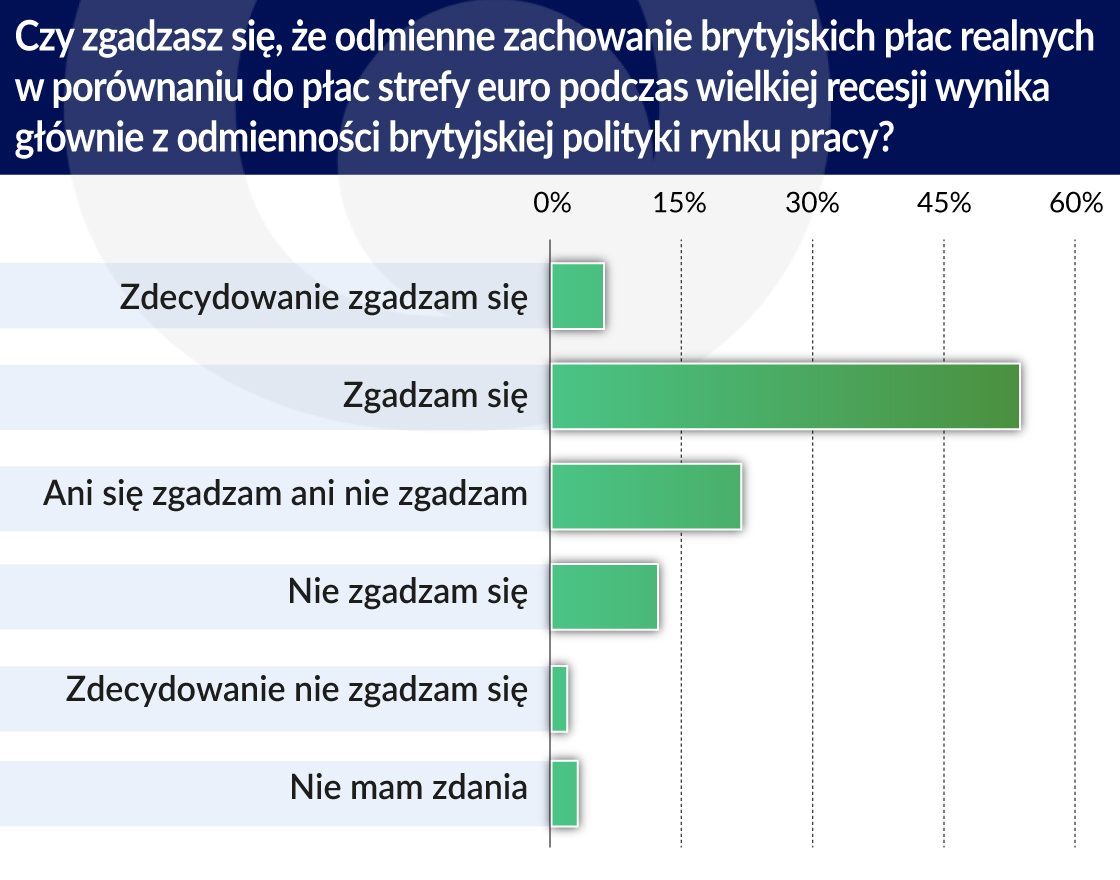 W ciągu ostatnich dziesięciu lat wzrost realnej stawki godzinowej kształtował się różnie w zależności od kraju. Niniejszy artykuł przedstawia pogląd większości uczestników ostatniej ankiety eksperckiej Centrum Makroekonomii (CFM) oraz CEPR, iż niski wzrost płac realnych miał pozytywny wpływ na wskaźnik zatrudnienia w Europie podczas fazy ożywienia gospodarczego po wielkiej recesji. Zdecydowana większość respondentów zgadza się również z tym, iż bardzo słaby wynik Wielkiej Brytanii w zakresie wzrostu płacy realnej w porównaniu do dużych gospodarek strefy euro wynika głównie z brytyjskiej polityki rynku pracy, która zapewnia pracownikom stosunkowo słabą ochronę.