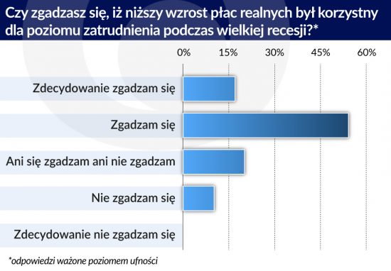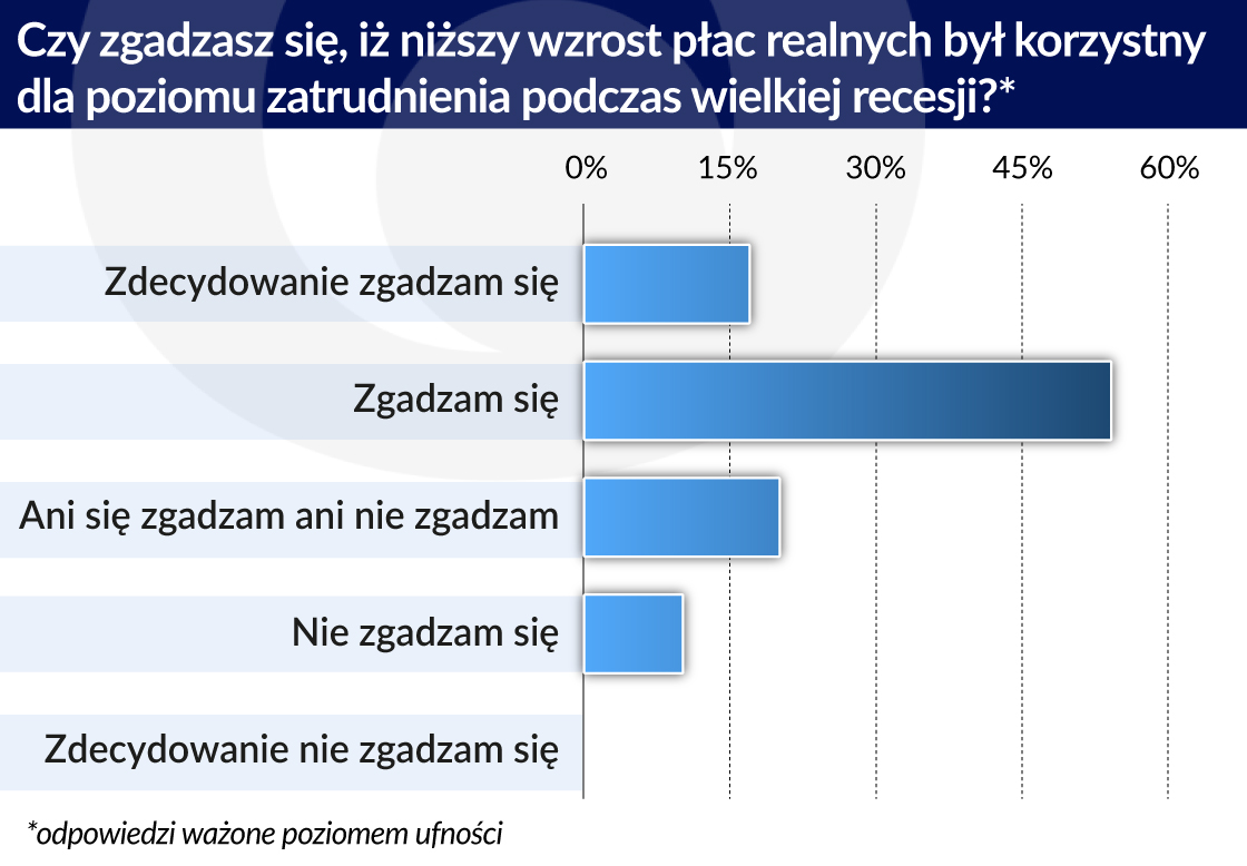 Pierwsze pytanie najnowszej ankiety eksperckiej CFM-CEPR skupia się na ustaleniu wpływu płac na ogół działalności gospodarczej, a w szczególności poziom zatrudnienia w trakcie i po recesji. Można przypuszczać, iż redukcje płac realnych są pomocne w wyjściu z recesji, jako że zwiększają zyski oraz wzmacniają bodźce dla firm do inwestowania oraz tworzenia miejsc pracy. Obniżenie poziomu wzrostu płac faktycznie stymulowałoby zatrudnienie w wielu modelach makroekonomicznych.