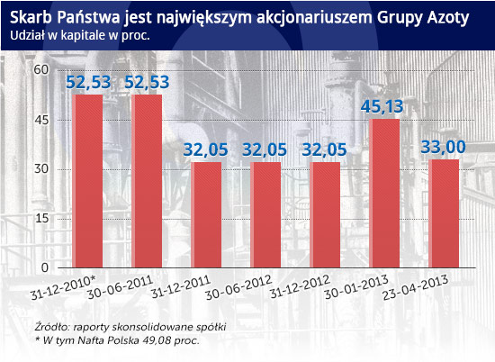 W 2012 rok branża chemiczna weszła z jasno sformułowaną strategią prywatyzacyjną. W ogłoszonym w marcu ub.r. Planie Prywatyzacji resort skarbu zapisał: „kontynuowanie prywatyzacji spółek sektora (chemicznego – przyp. t.św.), jak również jej rozpoczęcie w pozostałych podmiotach. Zbywanie kolejnych pakietów akcji spółek notowanych na GPW, takich jak: Ciech, Zakłady Azotowe Puławy, Zakłady Chemiczne Police czy Zakłady Azotowe w Tarnowie Mościskach, uzależnione będzie od sytuacji na rynku kapitałowym”.